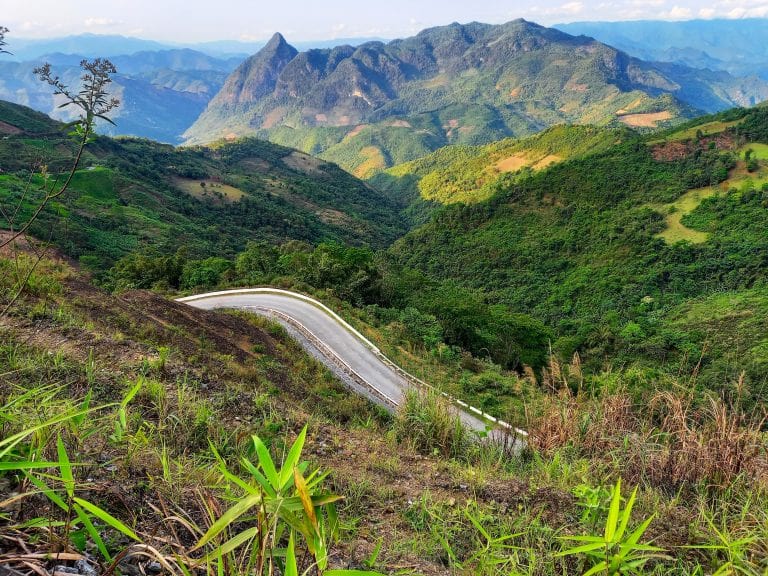 In the deepest, darkest, and most remote corner of northwest Vietnam, this meandering ribbon of asphalt is in excellent condition and sees hardly any traffic at all. Gliding over mountain ranges and sweeping along river valleys, National Highway QL4H is easy, uninhibited riding through a big landscape close to the Lao border. However, there’s a reason why so few vehicles ply this road: the region is remote and politically sensitive. If you choose to ride QL4H, be aware that the police may turn you back at any time, but particularly if you try to go beyond Mường Nhé. This great riding road is featured in my Extreme Northwest Loop.