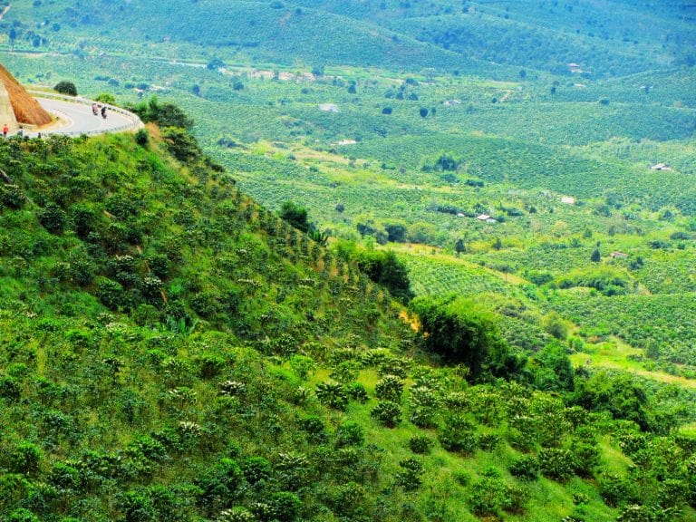 Forging a path from sea level to 1,700m at its highest point, National Highway QL27C is a relatively new route, linking the hot and sunny beach town of Nha Trang with the cool and misty mountain retreat of Dalat. I’m told that some kind of roadway existed along this route during French colonial times, but it was only recently that the road was upgraded to a National Highway. Now days, QL27C is the preferred route from coast to mountains. The road is wide and smooth for the majority of its length, including the 37km Khánh Lê Pass, a thrilling ascent from peaceful, agricultural valleys to cold, misty mountains cloaked in jungle. After reaching the Central Highlands, the road sweeps over a pine-studded plateau covered in coffee plantations. Although a popular route, traffic is still light enough (particularly on weekdays) to enjoy the ride unimpeded by cars and trucks. This great riding road is featured in my Classic Route: Saigon to Hanoi.