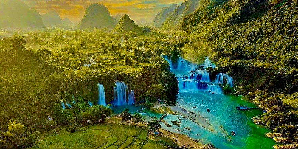If someone asked where you could be both overwhelmed by grandeur and enchanted by beauty, the answer would surely be Ban Gioc Waterfall in Cao Bang.