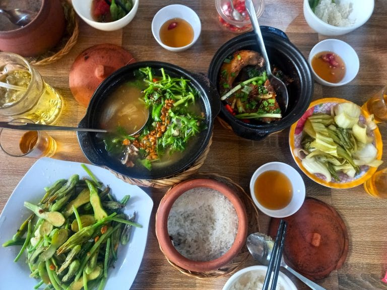 Street food at the cooked food market in Côn Sơn is great, especially for breakfast