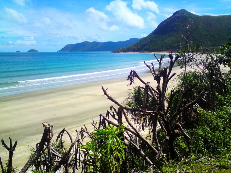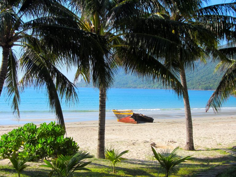Côn Sơn is a wild and rugged island: mountains and rocky headlands plunge straight into the sea creating a spectacular coastline. There aren’t many long, sandy beaches, like the ones you find on Phú Quốc Island, but there are several bays where the mountains give way to some stunning strips of sand and turquoise water. The following beaches are scattered around the main island of Côn Sơn and are listed in order of my own personal preference. All these beaches can be visited by bicycle, motorbike or taxi or, in some cases, only on foot. There are other beaches on the outlying islands, but you’ll need to charter a boat to get there (see this guide for details):