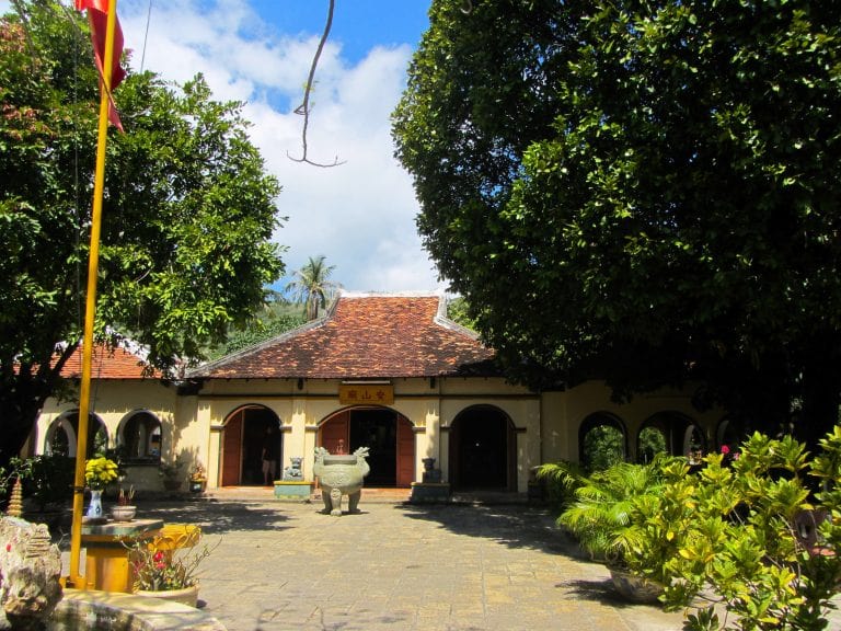 Phi Yến remained on the Côn Đảo Islands, until one day she was courted by another man. Traditionally, a good wife never betrays her husband, no matter what he’s done. Not wishing to be disloyal to Nguyễn Ánh, Phi Yến refused the approaches of her suitor and threw herself into the sea. Today, unlike her husband, Phi Yến is revered as a faithful, loyal wife and a loving mother: her two greatest attributes tragically coming into conflict with each other. She is worshiped on Côn Sơn Island at Miếu Bà Phi Yến (also known as An Sơn temple). The small, squat temple is set under a flame tree at the foot of a mountain by a lotus lake.