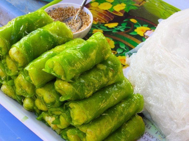 Bánh Khọt Duyên Trang [MAP]: A little west of town, near the lily-filled lakes, Duyên Trang serves bánh khọt – delicious crispy little medallions of rice flour topped with shrimp and pork then wrapped in leaves and dipped in sauce. Bánh khọt is actually a regional speciality of the province that Côn Đảo is part of: Bà Rịa-Vũng Tàu. Locals love it. Try it as an early evening snack.