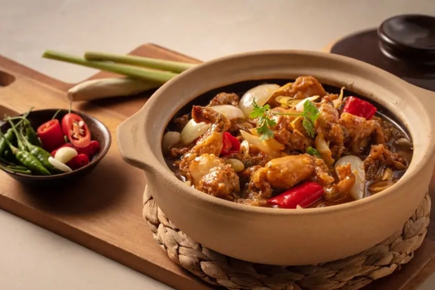 Phuong Tuong-style braised frog is a renowned traditional dish from Phuong Tuong Commune, An Thi District, Hung Yen Province. Made from fresh, wild frogs, the dish is slowly simmered with aromatic spices such as lemongrass, chili, garlic, and ginger.
