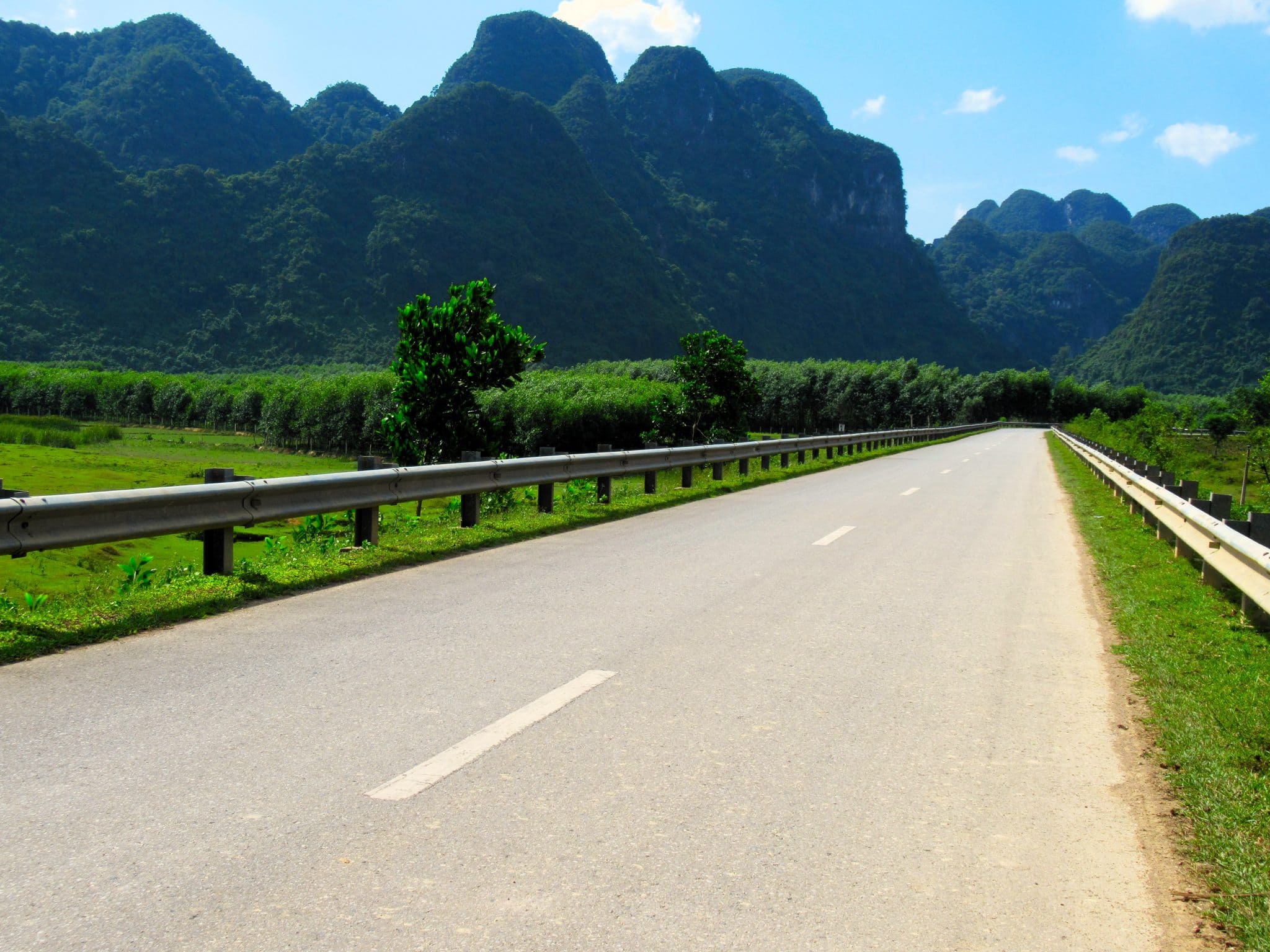 Leaving Phong Nha and Khe Gát junction behind, the Ho Chi Minh Road bears due northwest, starting with a long, straight section of road running beneath a line of limestone mountains, following the course of a war-era military airstrip. This gives way to the steep and wide Đá Đẽo Pass, which curls around the mountains offering Jurassic Park-like views across a lush landscape of jungles and karsts. Beyond the pass, the road ploughs on alongside blue rivers bisecting verdant valleys between vertical limestone pillars and wooden hamlets clustered on the narrow plains. Traffic is very light and the scenery is excellent for the entire 100km stretch between Phong Nha and the junction at Tân Ấp. If you have time, there are several small paved lanes leading off the highway to some wonderful swimming spots on the river.