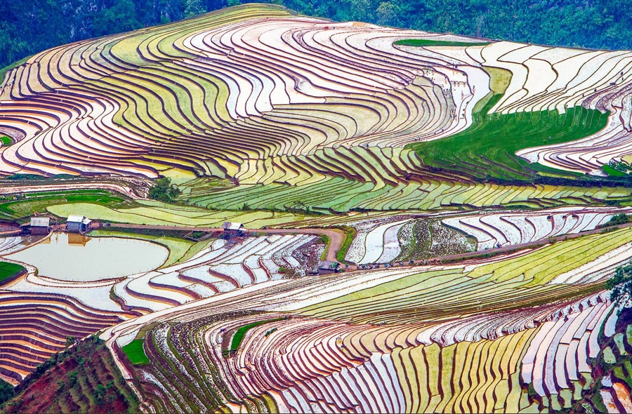 If spring in the Northwest dazzles with flowers and festivals, summer takes you into a different space — quiet, profound, yet incredibly captivating. This is the beginning of the flooded season, when local people channel water from the mountains to the terraced fields to prepare for the new rice crop. It is at this moment that nature in the Northwest dresses itself in a shimmering cloak, like a mirror reflecting the sky.