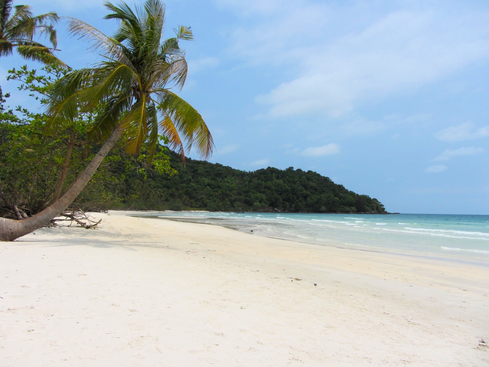 Description: Right at the northern tip of the island, Rạch Tràm is by far the most remote and least-visited of all the beaches and bays on Phú Quốc Island, and yet it is also one of the most beautiful. Completely undeveloped, Rạch Tràm features kilometres of fine white sand beneath arcing coconut palms lining a calm, clear, turquoise sea. Rạch Tràm fishing hamlet, at the southern end, is a scruffy-looking collection of corrugated-iron dwellings and wooden fishing boats. While there’s some trash from the village in the sea and on the sand, the further north you go along Rạch Tràm, the cleaner it gets. The 10km branch road to the beach is now wide and paved, making access easier than ever before. At the end of the road, bear right along a hundred meters of dirt track, then left down a sandy path until you reach the sea. From here, head north along the sands and enjoy the completely empty beach and wonderful sea swimming. There are plans to make the area into an ‘eco-tourism’ site, but for now there’s no accommodation whatsoever. If you have a tent, camp out on the sands for a memorable night. Behind the beach, densely jungled hills rise into the sky where birds of prey circle; and in the distance, the silhouettes of the Cambodian mainland and islands are clearly visible.