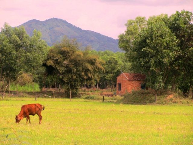 Long Khanh is not a bad place to stop for a bite to eat and a coffee, before continuing east on the Xuan Loc-Long Khanh back-road. In excellent condition, this road follows the train line through lush farmland until it meets Road DT766. Turn left (due north) and follow this route (which turns into Road DT713) for 40km to just beyond Vo Xu. As you head further north on this road, the scenery gets greener, lusher, and brighter. Rice paddies glow in the sunshine, lotus lakes shimmer in the heat, eucalyptus trees line earthen dykes that divide the fields, and forested hills begin to appear on the horizon: the highlands are getting closer.