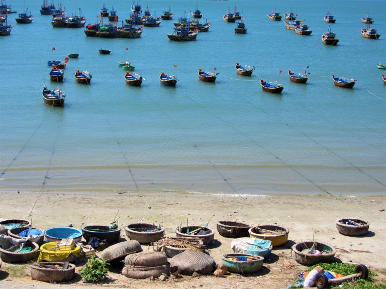 The new highway ends when it hits a bridge over the Lũy River and enters Phan Rí Cửa. There’s a rough edge to this fishing village, but it’s an exceptionally lively place for its size. There’s usually a good cluster of street food vendors and cafes in town and a busy, fascinating fish market. However, there’s not much reason to linger, so continue due east through town and out the other side along the coast towards Chí Công, a rocky bluff that is entirely covered with ramshackle fishermen’s dwellings: it looks like a barnacled rock.