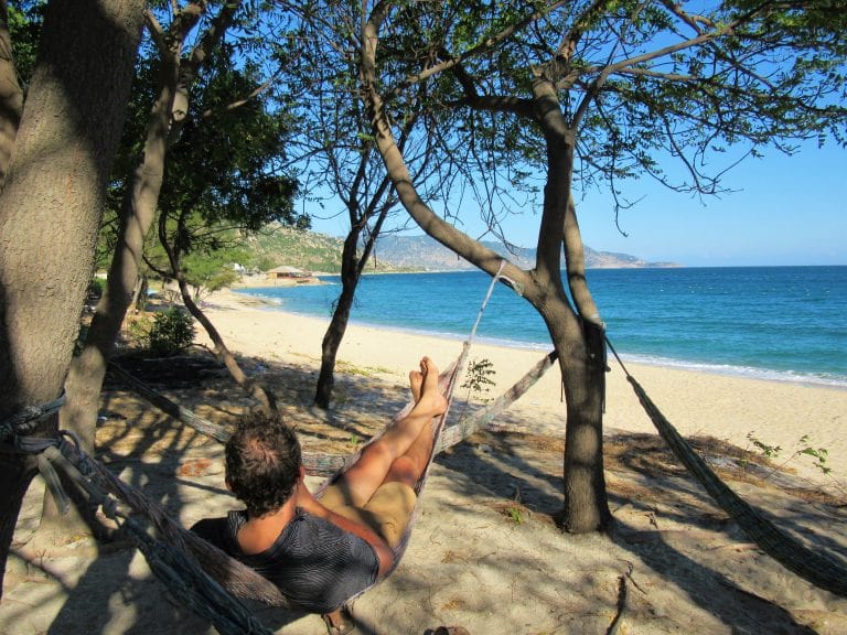 Cà Ná: It makes most sense to stay in Cà Ná, because this is the end of the route before the return journey and because this is where the best accommodation is. Hòn Cò-Ca Na Resort is a decent mid-range place to stay with sea views and beach access. Just west of the resort, along the seafront by the highway, there are a handful of other small hotels that are pretty cheap and fine for one night.