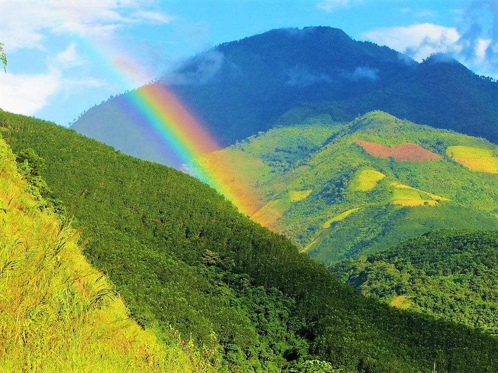 Below is a detailed, annotated route map followed by a short image gallery illustrating the kind of landscape and scenes you can expect to find on this road trip. On the map, I’ve outlined 3 main routes between Lao Cai and Dien Bien Phu. The blue route is the real Extreme Northwest: this is the longest, most remote, least travelled, and highest of all the routes. The green route is slightly shorter, with equally spectacular landscape and unpredictable road conditions. The red route is the easiest, most direct, and most travelled (but still highly scenic and remote). In general, the idea is to take one route out and another route back, thus creating a full Extreme Northwest Loop. On my map, I’ve started the route at the train station in Lao Cai, because this is where many travellers begin their road trips in northern Vietnam, having shipped their bikes as freight on the overnight train from Hanoi. However, another convenient starting point is Sapa, since it’s such a popular destination and there are many places to rent motorbikes. (Note that the route from Lao Cai to Sapa is covered in my Y Ty Loop Guide and the route from Sapa to Sin Ho is covered in my Sin Ho Loop Guide.)
