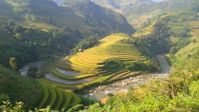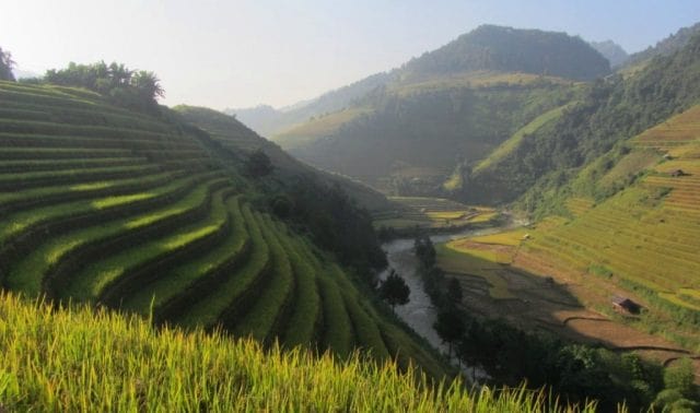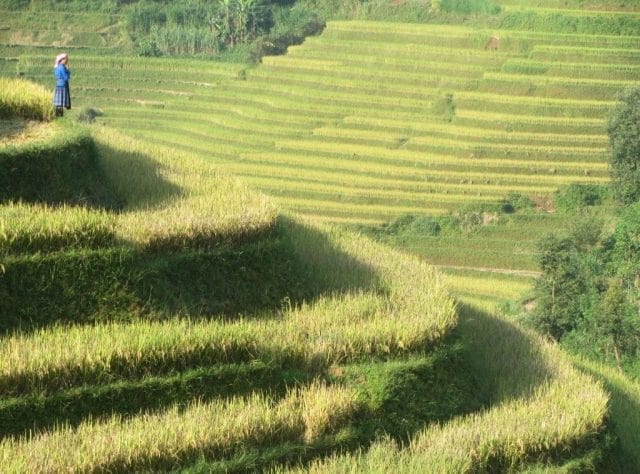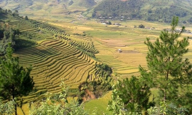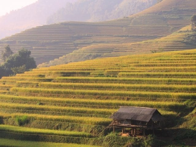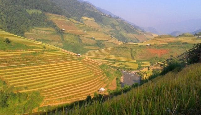 Seen from the Khau Pha Pass, the terraces look like a ‘rice glacier’, slowly sliding down the hillside.